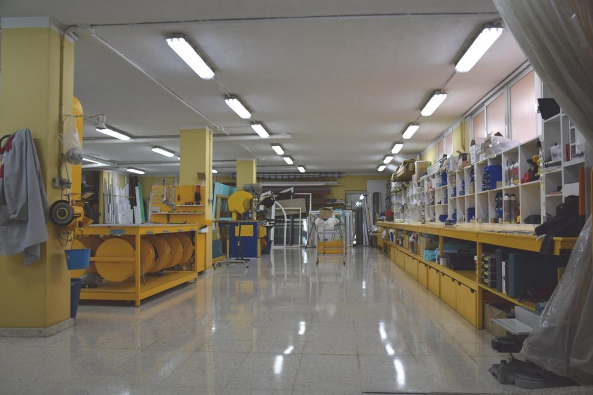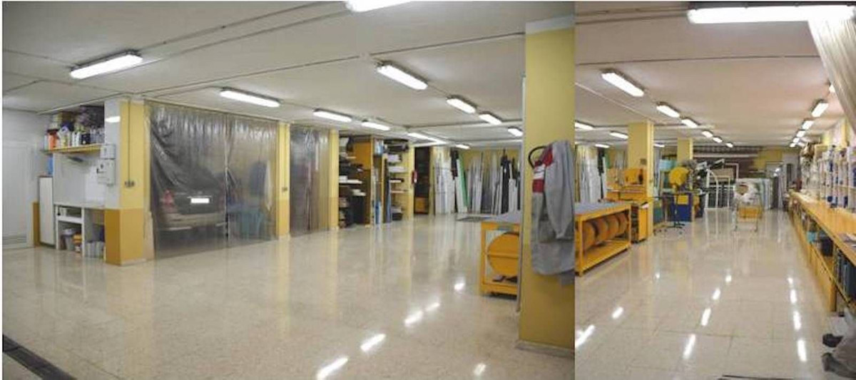At the moment, the premises are used for metal carpentry and storage. This space is very versatile and adaptable for various potential activities. It can be transformed into an open area by easily removing existing partitions that are located on the flooring, which is finished with polished terrazzo and is also polished.