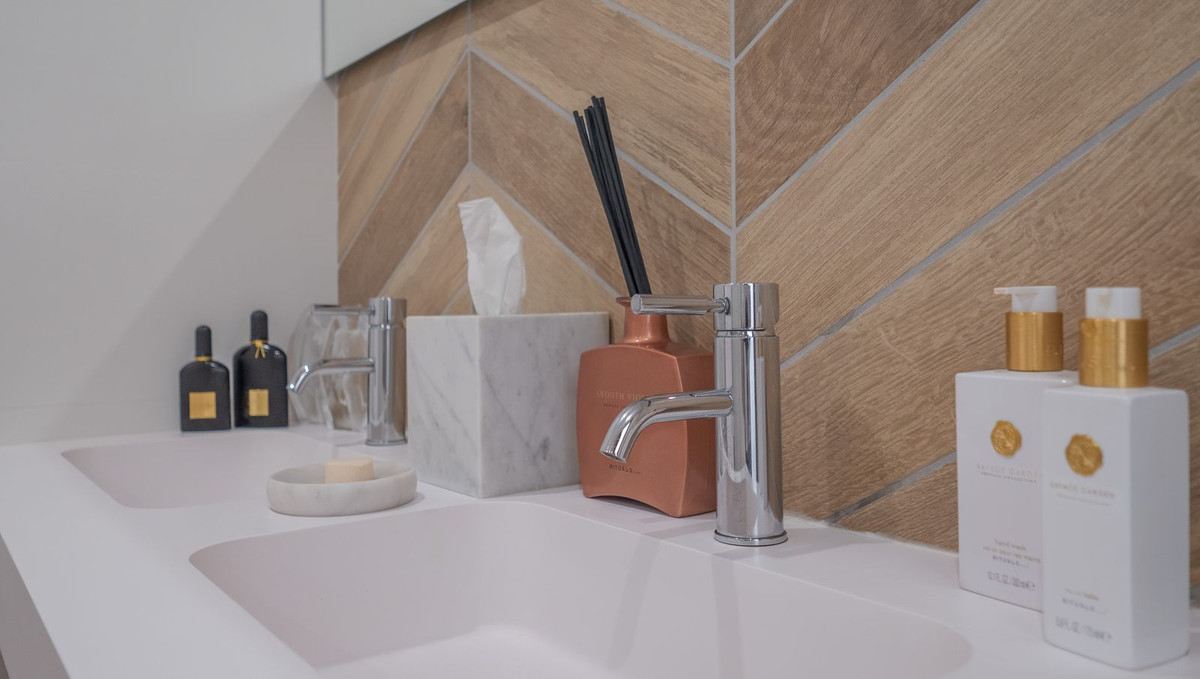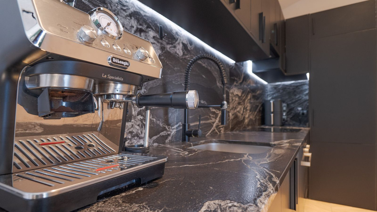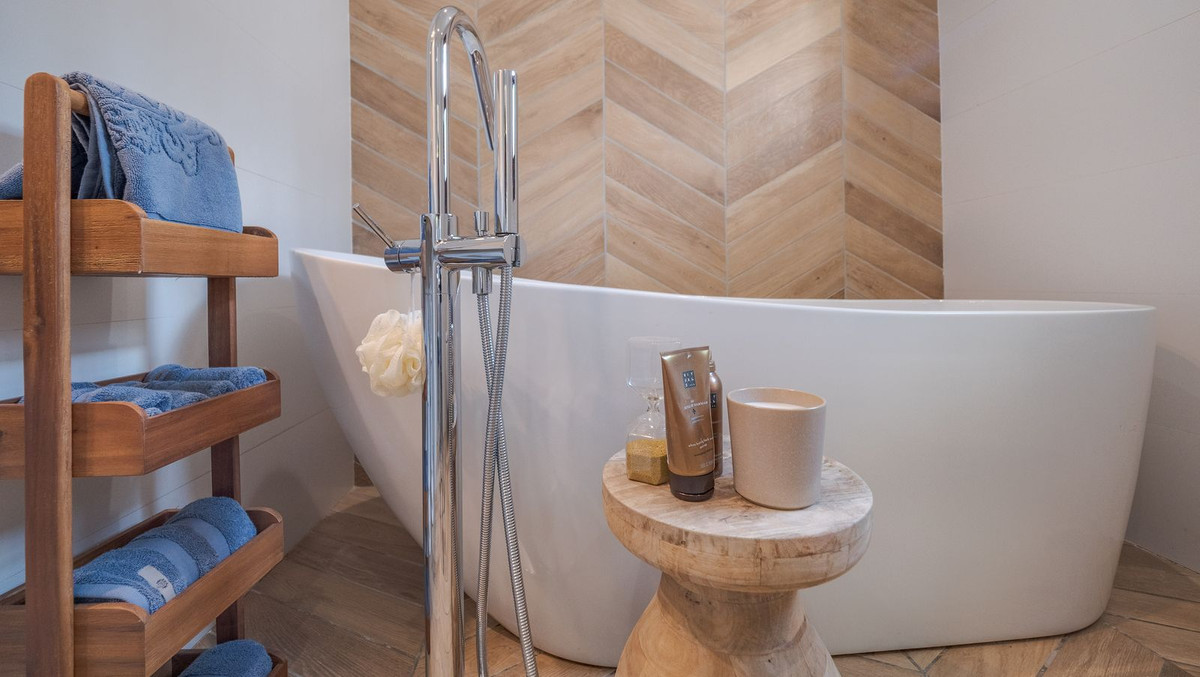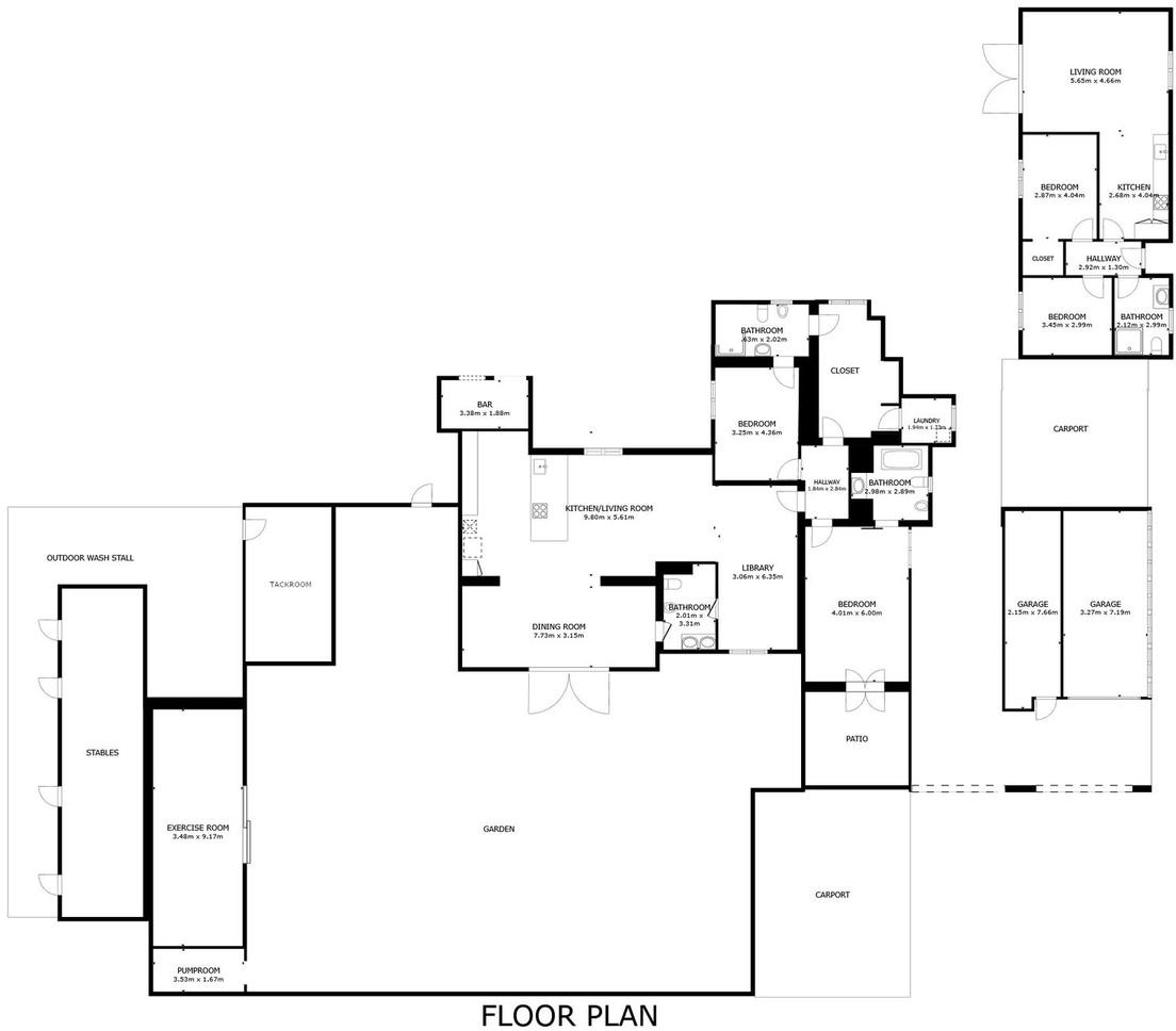 The main house offers two spacious bedrooms, each with a luxurious ensuite bathroom. The master suite includes a second wood-burning stove, an elegant ensuite, and a large walk-in wardrobe that could easily be converted into a third bedroom. Behind the wardrobe is a practical laundry room. The entire house has been finished to an exceptional standard and features a discreet wall-integrated air conditioning system for year-round comfort.