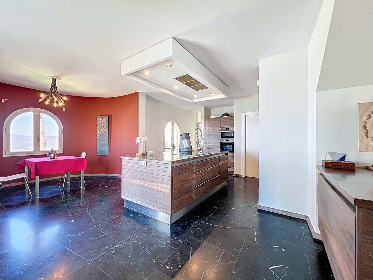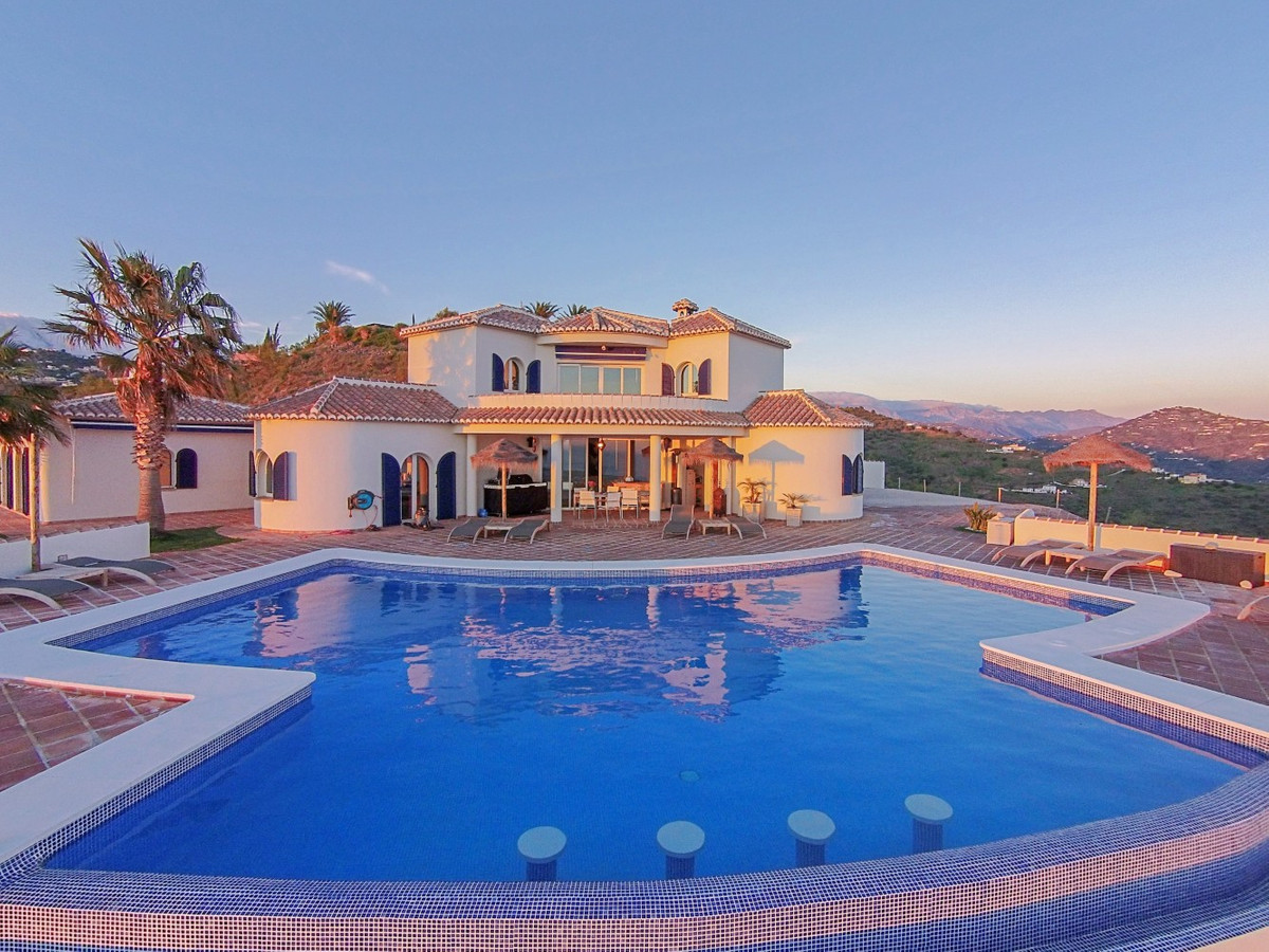 Imagine waking up each day to the soothing embrace of the Mediterranean in this exquisite villa. A true architectural masterpiece, this home offers an unparalleled lifestyle, seamlessly combining spacious interiors with awe-inspiring vistas that stretch all the way to the horizon. The living area welcomes you with an abundance of natural light, thanks to floor-to-ceiling sliding glass doors that perfectly frame the mesmerizing views of the azure sea. The open-plan design creates an ideal flow for both intimate gatherings and grand entertaining, blurring the lines between indoor luxury and outdoor paradise. For the culinary enthusiast, the gourmet kitchen is a dream come true, equipped with state-of-the-art appliances and ample space for creating memorable meals. Dine al fresco on the expansive terrace, where the gentle sea breeze enhances every moment. The lavish master suite, spanning 32.5 m2, offers a tranquil retreat with panoramic ocean views. Start your day in the spa-like bathroom, a true testament to luxury and comfort. The private balcony ideal for sipping morning coffee or enjoying an evening cocktail as you watch the sun dip into the sea. At the outside, the terracotta-tiled outdoor terrace is your personal oasis. Bask in the warm Spanish sun, host unforgettable parties, or simply lose yourself in the mesmerizing views of the coastline. Beyond the beauty, this villa offers a rare opportunity for those looking to start a business, like a B&B. With 4 rentable rooms, each with its own bathroom and entrance, the property has already been successfully operated as a B&B, receiving only glowing reviews. In addition to the rental rooms, theres a private bedroom on the first floor with its own bathroom, and another bedroom with a bathroom in the basement. The fully equipped kitchen inside and the wonderful outdoor kitchen provide all the necessary amenities for running a successful business, while the large underground garage offers plenty of space for storage. Located in Algarrobo, Málaga, this property ensures easy access to world-class amenities, pristine beaches, and rich cultural experiences, all while offering the perfect setting to indulge in Mediterranean living. Whether you're looking for a luxury family home, a business opportunity, or simply a slice of paradise, this villa delivers on every front. This is more than just a home; its a lifestyle. Embrace the pinnacle of Mediterranean living in this extraordinary villayour dream of owning a piece of paradise is now within reach. Dont miss the chance to elevate your life to new heights of luxury, beauty, and opportunity. We are pleased to be able to present this dream property to you soon, either personally or via virtual viewing. Because this world, it is unique - just like our Axarquía. In Andalusia. On the Costa del Sol. Here, on the sunny side of life...